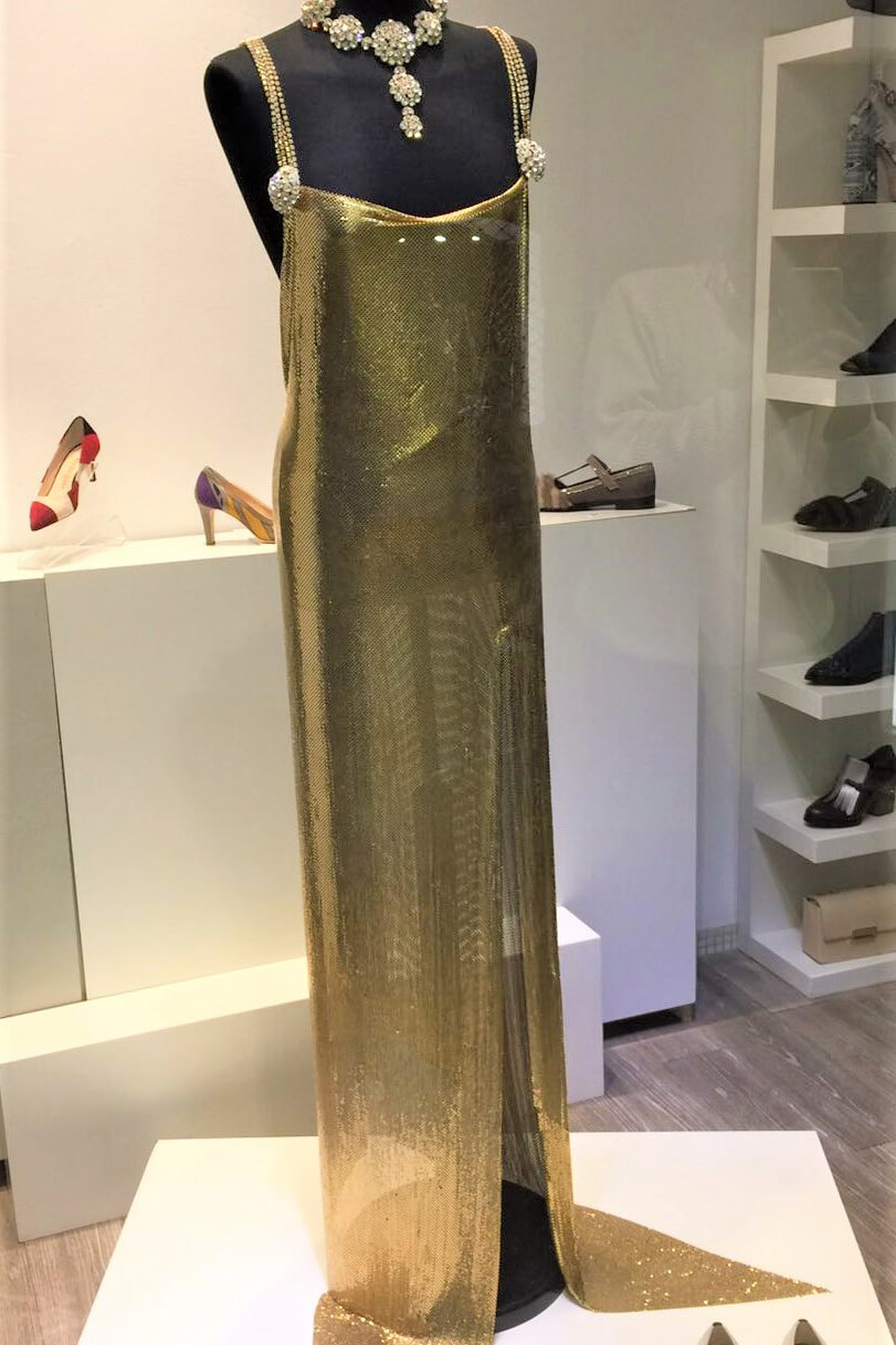 Abito in tessuto di ottone dorato con bottoni strass per RIZIERI Bijoux
